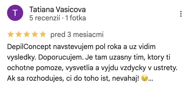 Bezbolestné ošetrenie s 30% redukciou chĺpkov už po PRVOM sedení! Vhodné aj na citlivú pokožku. Získajte svoje prvé sedenie len za 6,90€.
